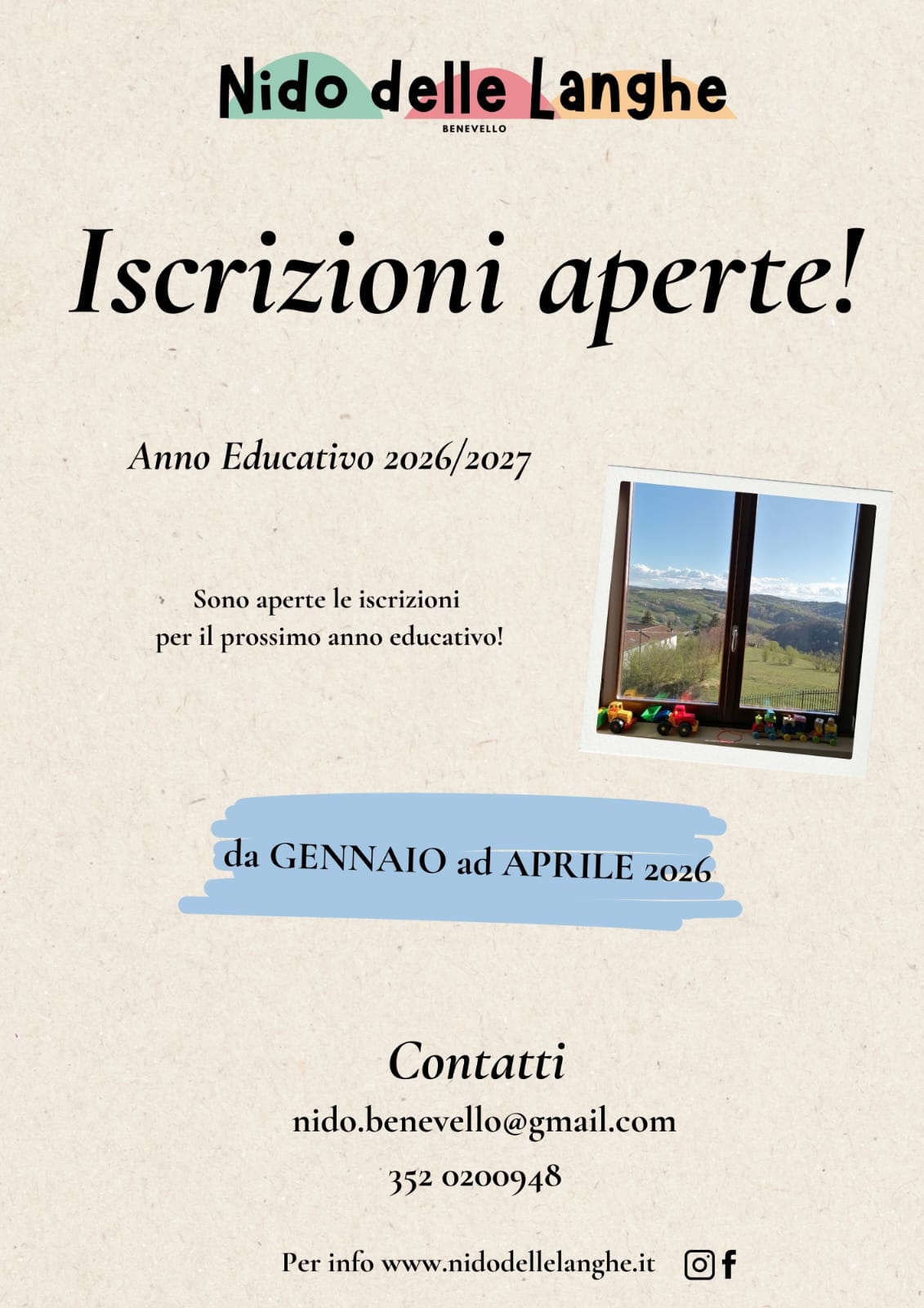 Sono aperte le iscrizioni per l′Anno Educativo 2026 2027!